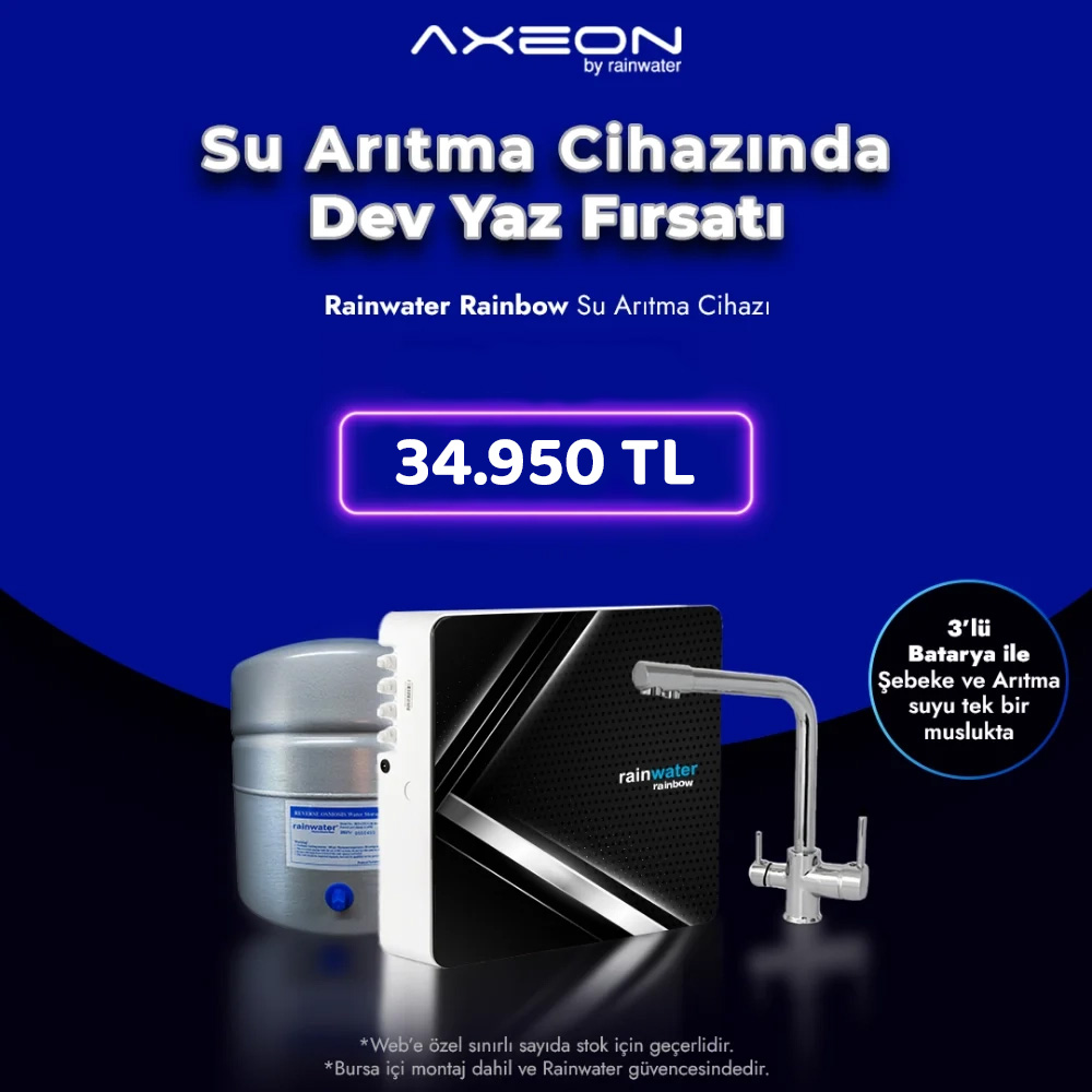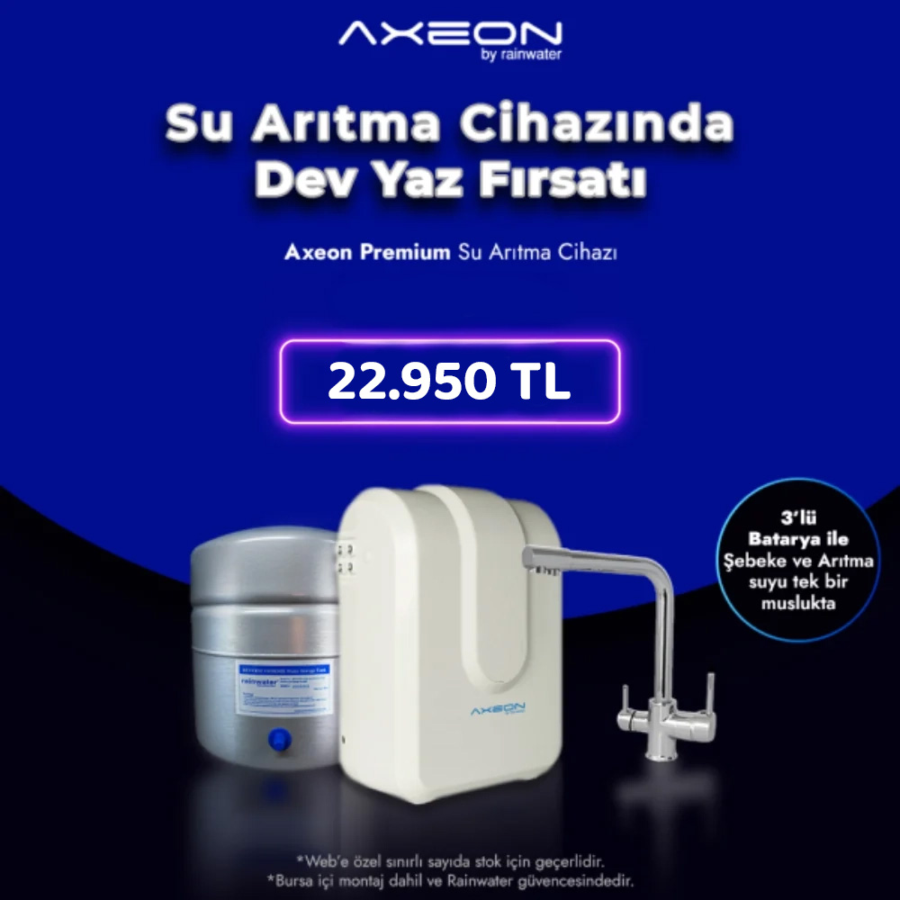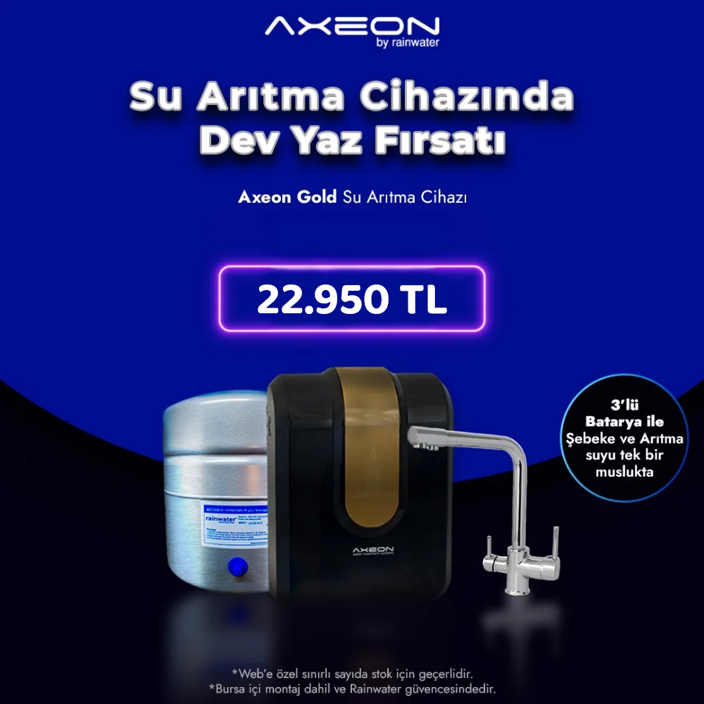 Axeon & Gold cihazınız ile birlikte gelen çelik-krom malzemeden imal edilen aç-kapa Avrupa musluğu uzun yıllar sorunsuz kullanabilirsiniz. Bursa'da en iyi su arıtma firması güvencesiyle...